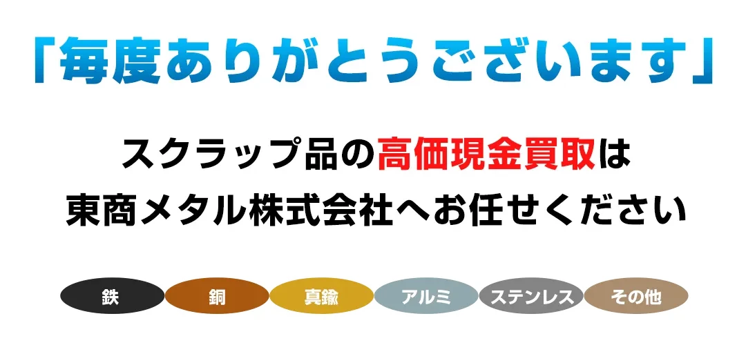 東商メタル株式会社は奈良県大和郡山市を拠点に、鉄・銅・真鍮・アルミ・ステンレスなど様々な金属スクラップ買取を行なっています。